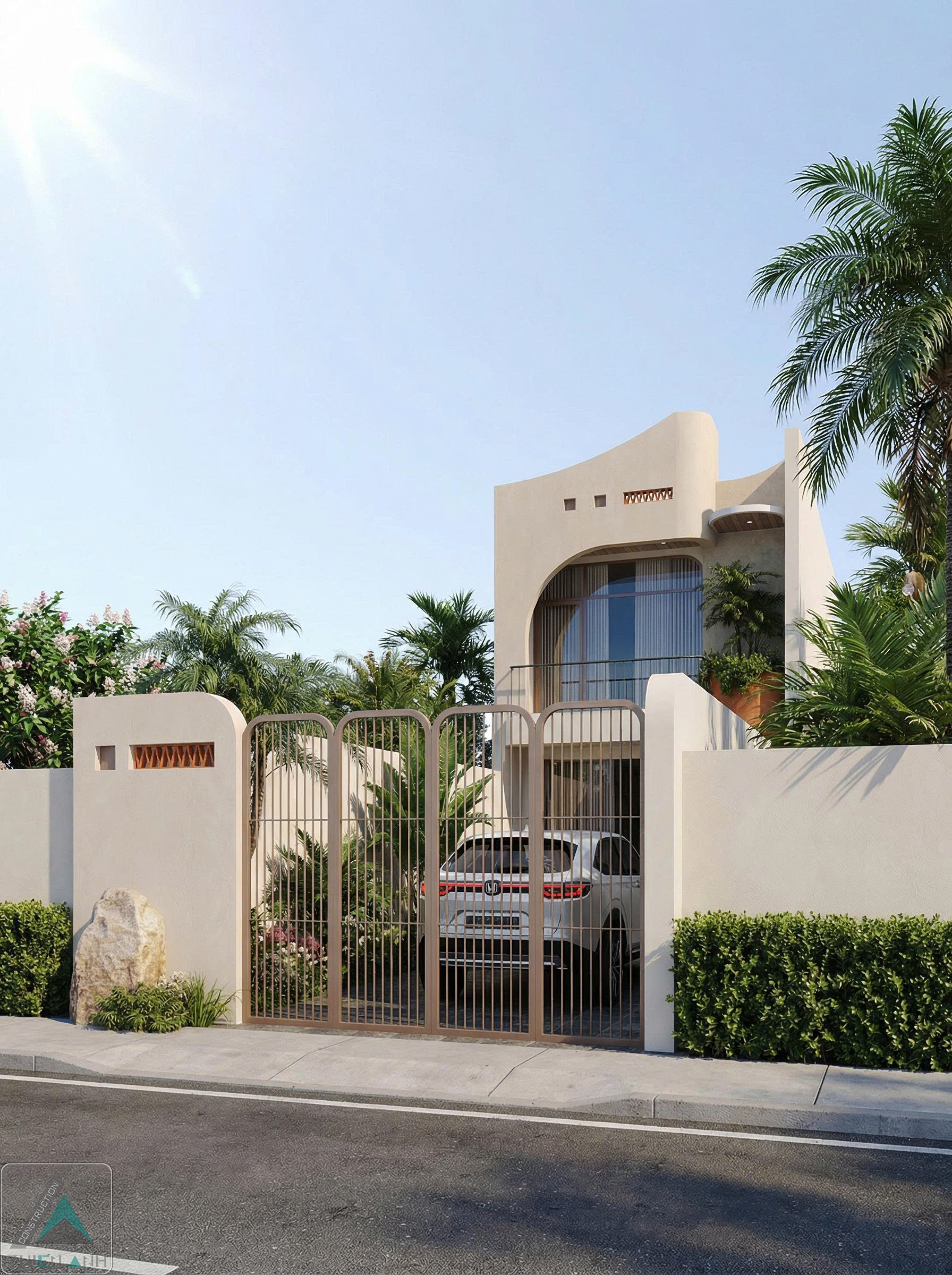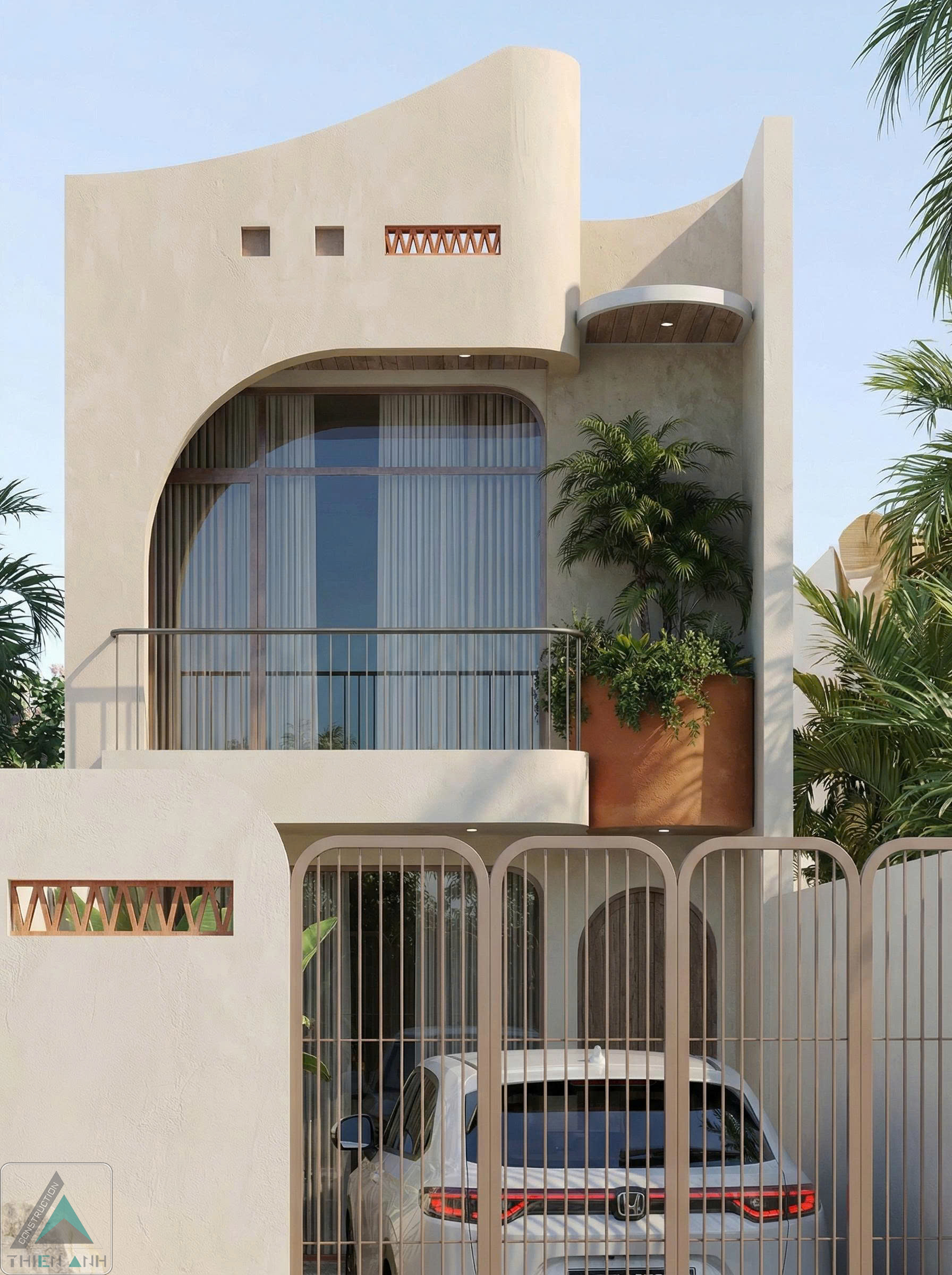 Bạn đang sở hữu một mảnh đất có chiều sâu cực lớn tại Long Điền, Bà Rịa - Vũng Tàu và đang tìm kiếm một thiết kế vượt ra khỏi những khuôn mẫu nhà ống thông thường? Hãy cùng Xây Dựng Thiên Anh khám phá mẫu nhà 1 trệt 1 lửng với mặt tiền kiến trúc vòm mang âm hưởng Địa Trung Hải nhiệt đới.